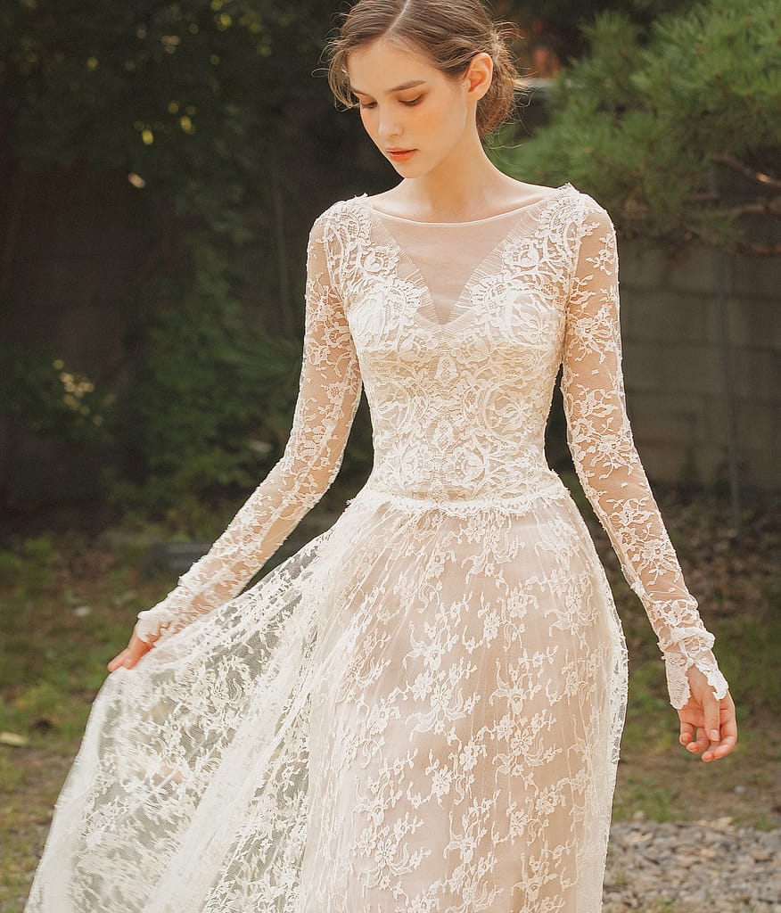 화이트와 피치, 샴페인골드, 아이보리 등 피부톤과 흡사한 미색을 가진 드레스들을 다채롭게 보유하고 있어서 나의 피부톤에 맞춰 드레스를 선택할 수 있습니다. 레이스 디테일의 패턴 디자인은 세련되면서도 유니크하게 느껴지고, 여성의 고유한 아름다운 실루엣을 더욱 돋보이게 연출해 로맨틱하면서도 시크한 무드를 완성합니다.