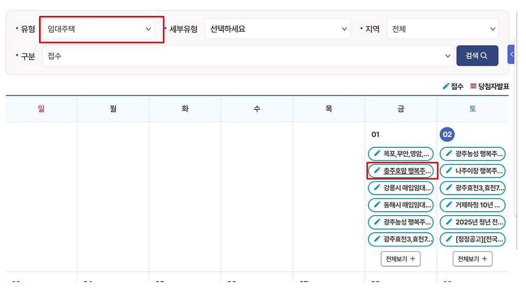 여기서 핵심은 필터 활용이에요. 지역(서울, 경기, 부산 등)과 주택 유형(행복주택, 국민임대 등)을 설정하면 수많은 공고 중에서 내게 해당하는 것만 빠르게 찾을 수 있습니다. 필터 안 쓰면 정말 찾기 힘들어요.